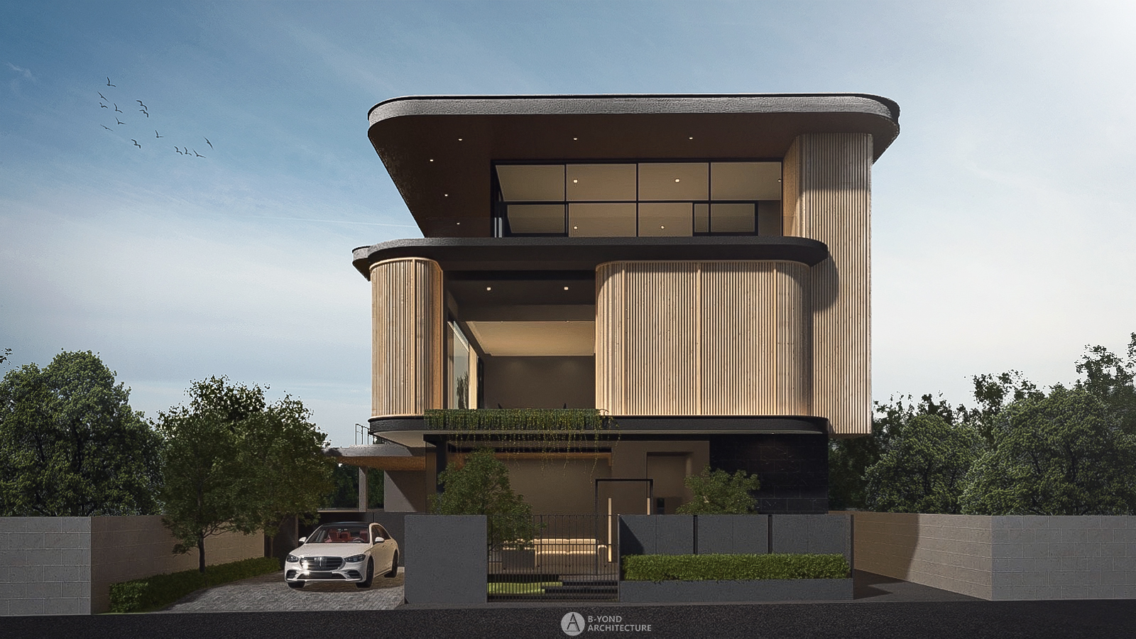 The homeowner has a preference for a variety of finishing materials, as well as latticework and curved lines. Thus, the design adopts a Modern Tropical style, featuring harmonious curves that complement the interior spaces.